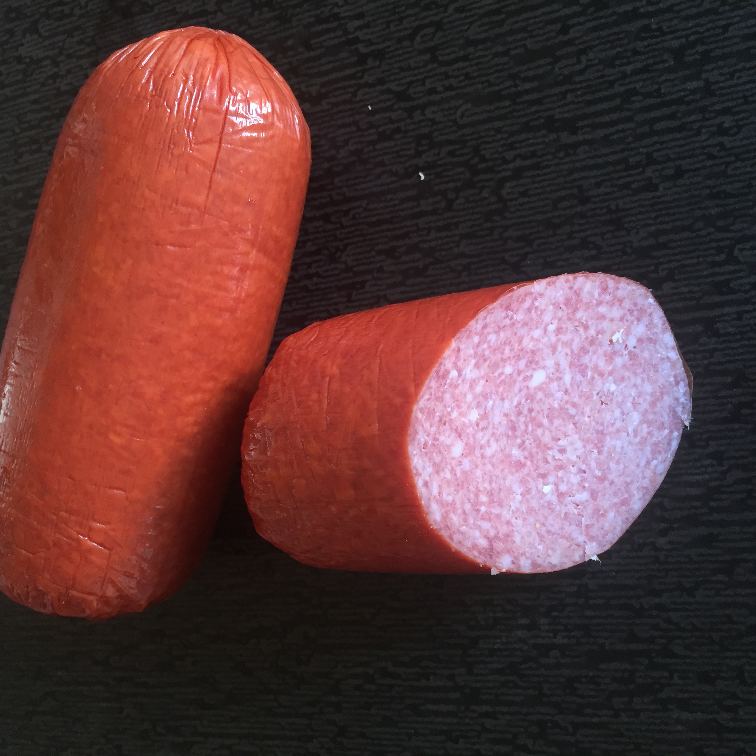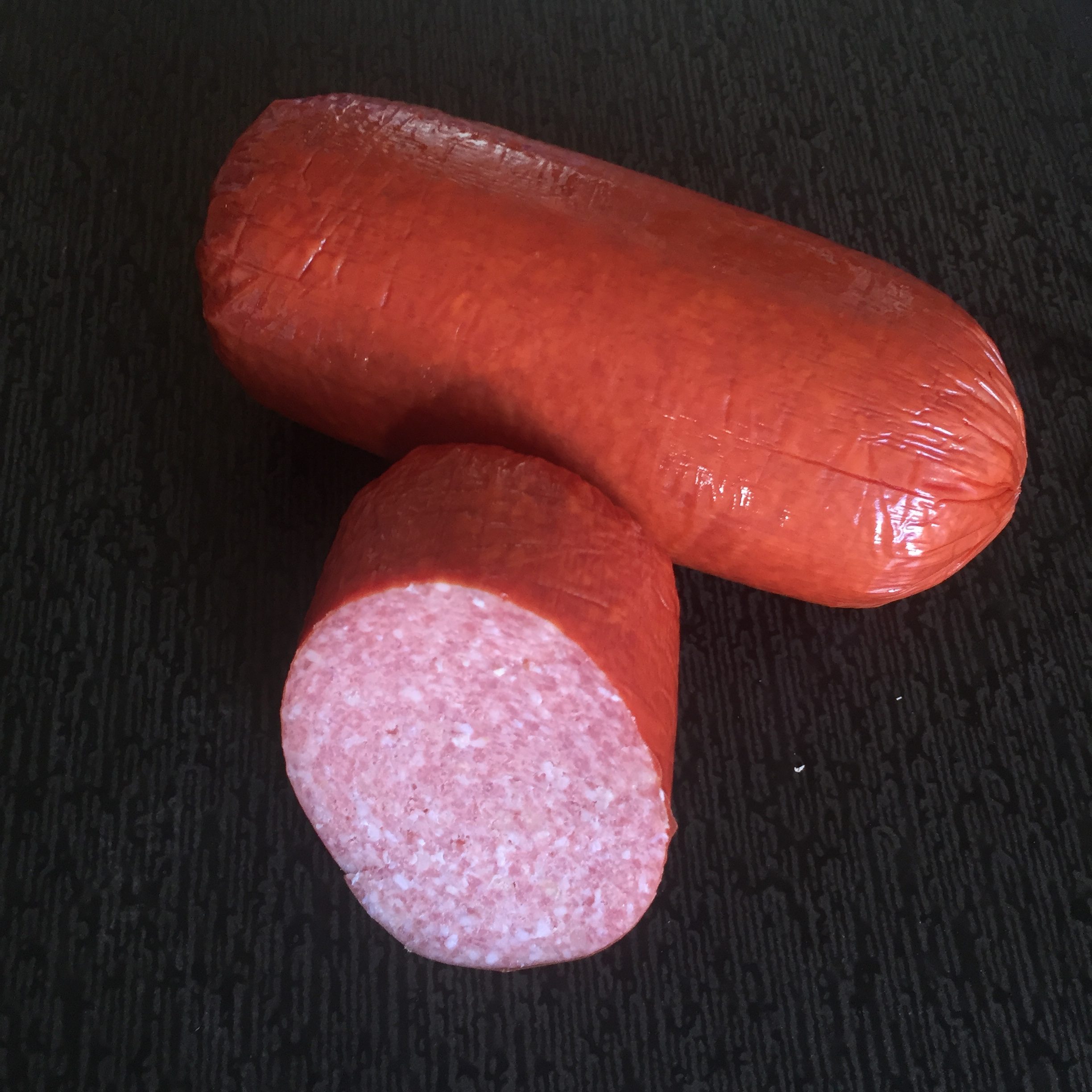 Til 100 g færdigvare er anvendt 125 g kødråvarer (56 % svinekød, 32 % oksekød, 12 % svinespæk), kartofler (16 %), salt, dextrose, krydderier, hvidløg, laktose (af MÆLK), maltodextrin, krydderiekstrakt, starterkultur, antioxidanter: natriumascorbat, ascorbinsyre; konserveringsmiddel: natriumnitrit. Ikke-spiselig kunsttarm.